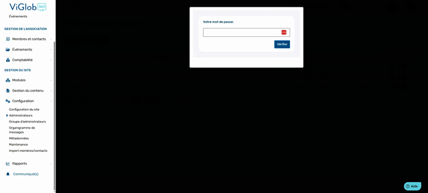 Par mesure de sécurité, le système vous demande d'entrer votre mot de passe avant d'afficher la liste des administrateurs.