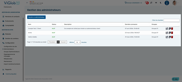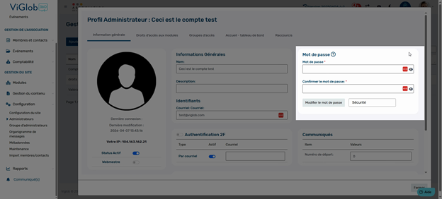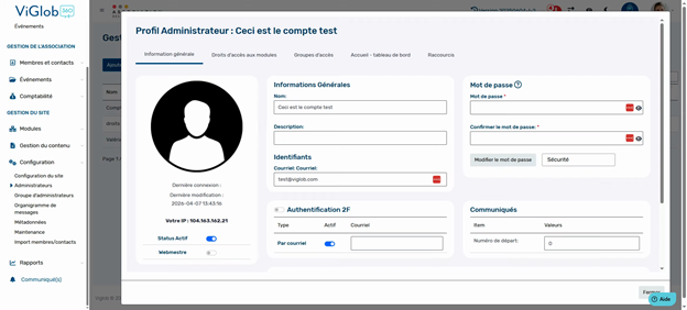 Cette gestion avancée des comptes administrateurs vous permet de sécuriser l’accès à la plateforme, adapter les droits en fonction des besoins, et garantir la confidentialité des informations. Prenez le temps d’explorer chaque onglet pour une configuration optimale et adaptée à votre organisation.