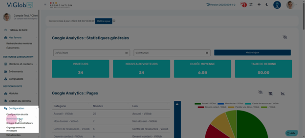Pour bien gérer les administrateurs dans la plateforme, commencez par accéder à l'administration depuis le menu principal.