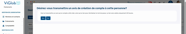 Le système vous propose ensuite d'envoyer un avis de création de compte à la personne concernée. Ce courriel contient un lien lui permettant de définir elle-même son mot de passe, garantissant la sécurité et la confidentialité.