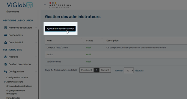 Pour ajouter un nouvel administrateur, cliquez sur Ajouter un administrateur.